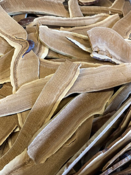 Reishi is an herbal mushroom believed by some to have health benefits, though there is little evidence of its efficacy. Plenty of information on the various uses of Reishi is available online. Because of its bitter taste, Reishi is traditionally prepared as a hot water extract product. It is not intended to be eaten as a culinary mushroom. Thinly sliced or pulverized dried Reishi is added to boiling water which is then reduced to a simmer, covered, and left for 2 hours. The resulting liquid is dark and fairly bitter in taste. The process is sometimes repeated to increase the concentration. To reduce the bitter taste, some users will add fruit juices, sweeteners and herbs. Alternatively, it can be used as an ingredient in a formula decoction, or used to make an extract (in liquid, capsule, or powder form)
