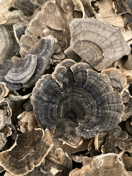 Turkey tail mushrooms. Trametes versicolor. Wild harvested in the USA.